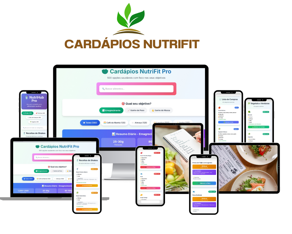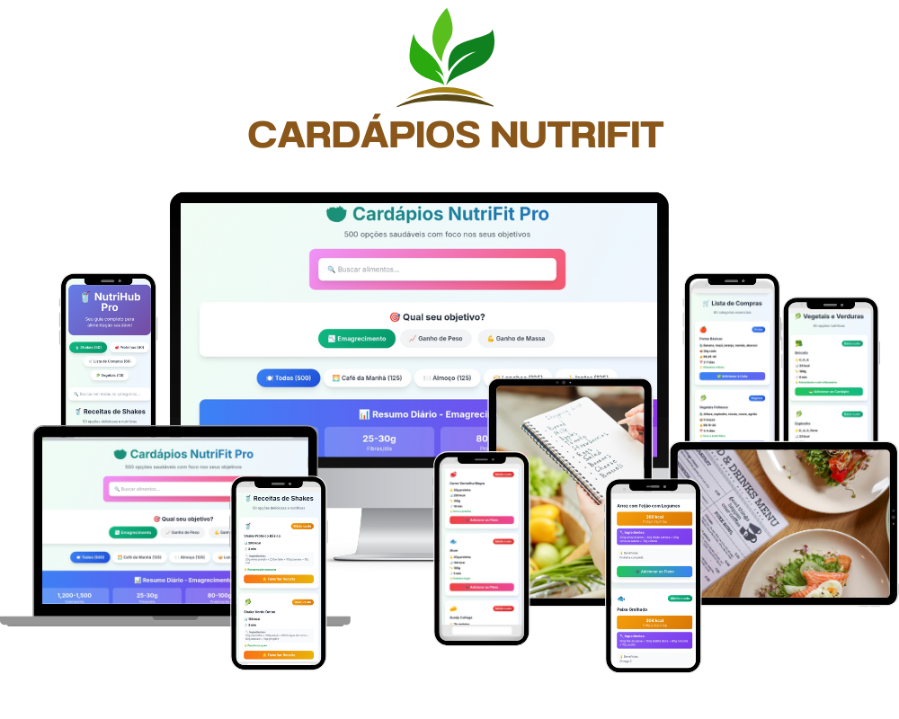 - Cardápios acessíveis, saborosos e pensados para resultados rápidos sem precisar de nutricionista.